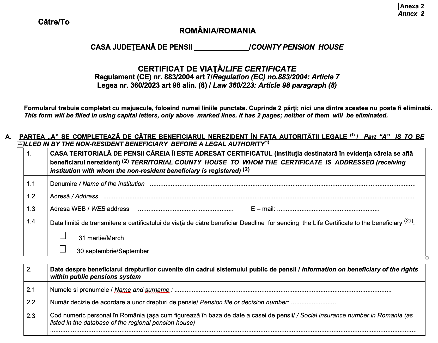 Sursă: CNPP, Primele secțiuni din Certificatul de viață
